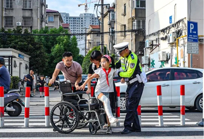 開學(xué)前夕,中隊(duì)認(rèn)真調(diào)研轄區(qū)14所學(xué)校附近的交通狀況,民輔警分組蹲點(diǎn)記車流、摸需求,聯(lián)合社區(qū)找周邊社會資源,在此基礎(chǔ)上加設(shè)學(xué)生步行通道,優(yōu)化人車分流,擴(kuò)大停車區(qū)域,將調(diào)研成果轉(zhuǎn)化為安全動線,用精準(zhǔn)分工守護(hù)平安上學(xué)路。