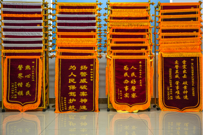 榮譽(yù)室里,“人民滿意政法單位、“工人先鋒號”、“先進(jìn)基層黨組織”等獎牌熠熠生輝,數(shù)百面錦旗匯聚成紅色熱浪撲面而來。葉豐海聲音里滿是自豪:“這些榮譽(yù)是大家一起拼出來的!”