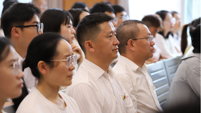 9月3日9時整,安寧中學(xué)初中部全體師生懷著無比激動的心情,共同觀看閱兵盛況。全體教師齊聚學(xué)校小報告廳,各班同學(xué)則在班主任的組織下,于本班教室及學(xué)校大報告廳同步收看。當(dāng)莊嚴(yán)的國歌聲透過屏幕響徹校園每一個角落時,全體師生自覺肅立,齊聲高唱國歌,眼神中滿含著對祖國的無限崇敬與深深自豪,氣氛莊重而感人。