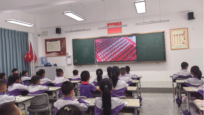 9月3日上午,安寧市第二小學(xué)組織全體師生在各班教室觀看了紀(jì)念中國人民抗日戰(zhàn)爭暨世界反法西斯戰(zhàn)爭勝利80周年大會現(xiàn)場直播。上午9時,莊嚴(yán)的儀式在北京天安門廣場正式開始。伴隨著雄壯的《義勇軍進(jìn)行曲》,鮮艷的五星紅旗冉冉升起,全體師生肅立,齊聲高唱國歌,向國旗行注目禮,教室里洋溢著莊嚴(yán)神圣的氣氛。