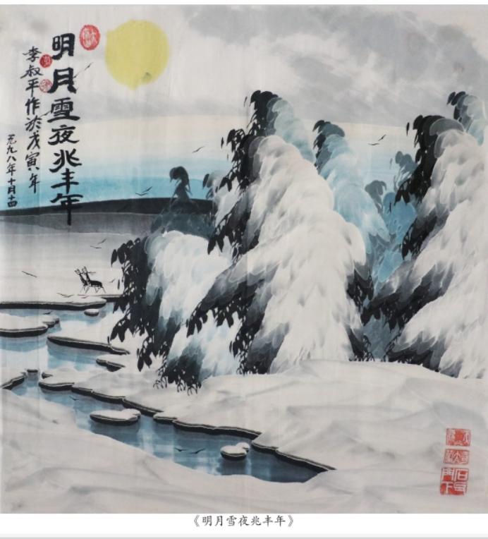 如今再品李叔平的山水,便能讀懂其中更深層的文化意涵:那泰山的雄姿里有民族的脊梁,那四季的流轉(zhuǎn)中有歲月的溫情,那筆墨的韻味里有傳統(tǒng)的基因。他以畫筆為舟,在傳統(tǒng)與現(xiàn)代之間擺渡文化火種;以山水為卷,在時代浪潮中書寫精神傳承。當(dāng)我們凝視他筆下的泰山,看到的不僅是一座山的雄姿,更是一個民族的品格:當(dāng)我們沉醉于他的四季山水,感受到的不僅是自然的美景,更是文化的生生不息。這便是李叔平藝術(shù)最動人的力量-讓山河在筆墨中永恒,讓文脈在傳承中新生。