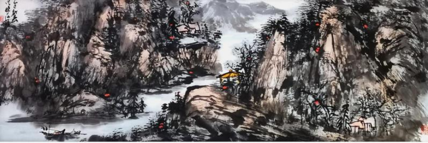 范曉茫是一位心里藏著千山萬壑,又能笑看綠肥紅瘦的詩情才子。他的畫室中滿是峭拔的山水、扁舟流泉和爛漫山花,秋江意境在霧散露聚之間展現(xiàn)得淋漓盡致。畫家的千古幽思和萬般情懷,盡展于咫尺空紙之上以及酣暢淋漓的筆墨之中。