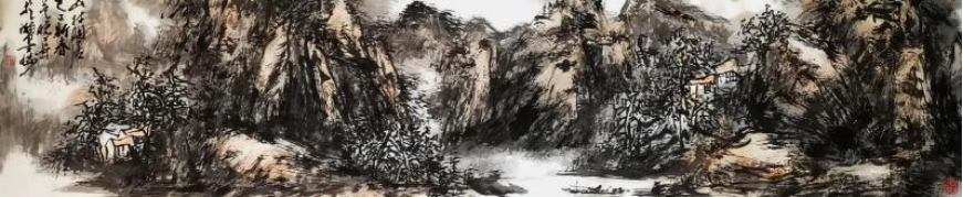 范曉茫先生對真山真水有著深刻的體察和感悟。他喜游歷,每年都會抽出大量時間遍訪祖國的名山大川、峻林古剎,從大自然中汲取靈感和營養(yǎng)。他的作品中既有江南水鄉(xiāng)的靈秀小景,又有北派山水的宏偉大氣。其筆墨功底扎實,畫作獨樹一幟。在他的筆下,構(gòu)圖飽滿,用筆隨意靈動中法度嚴(yán)謹(jǐn),用墨活躍中體現(xiàn)厚重,意喻深邃,章法新穎,善將水墨彩完美地融合為一體,達到奔放不羈、氣勢偉岸的效果。代表作品如《青弋江邊》《群峰競秀》《西海牧云》等,整體厚重通透,既有山河之美,也可感田園之趣,讓觀者仿佛置身于山水之間,感受到大自然的魅力和神韻。