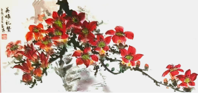 她的色彩運用更彰顯出古今融合的智慧:在繼承傳統(tǒng)中國畫淡雅基調(diào)的同時,大膽融入嶺南畫派妍麗明快的設(shè)色特點。牡丹的華貴、荷花的清逸、木棉的熾烈,在她筆下既保持自然本色,又被賦予裝飾性的美感,形成“色調(diào)妍麗而典雅”的視覺特質(zhì)。這種對色彩的革新,使作品在當代展廳中煥發(fā)出強烈的視覺感染力。