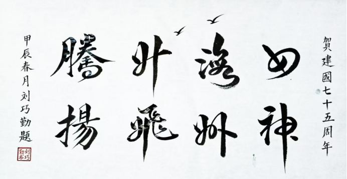 劉巧勤在書法和國畫領(lǐng)域均有深厚造詣。他的書法作品結(jié)構(gòu)嚴(yán)謹(jǐn),筆力沉穩(wěn),在傳統(tǒng)基礎(chǔ)上尋求創(chuàng)新;國畫作品注重意境營造,善于通過筆墨變化表現(xiàn)物象特質(zhì)。藝術(shù)評(píng)論家單國強(qiáng)、劉雄曾對(duì)其作品《海納百川》《松竹梅》給予專業(yè)認(rèn)可。
