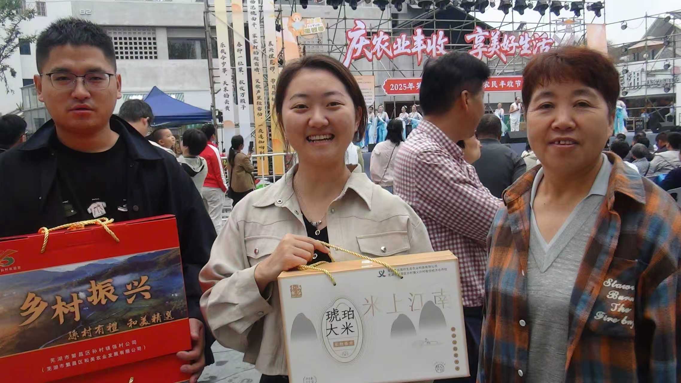 9月21日上午,蕪湖市五蓮圩生態(tài)農(nóng)業(yè)科技有限公司的“新農(nóng)人們”,在2025年蕪湖市繁昌區(qū)中國農(nóng)民豐收節(jié)慶典現(xiàn)場,展示他們自已創(chuàng)立的特色農(nóng)產(chǎn)品品牌——琥珀大米。