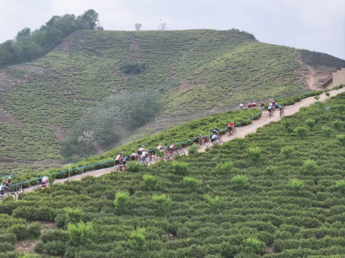 很快,我抵達(dá)了梅沖萬春源白茶基地。遠(yuǎn)遠(yuǎn)望去,層層疊疊的茶樹宛如綠色的波浪,在山坡上綿延起伏。采茶姑娘們身著色彩鮮艷的衣裳,穿梭在茶樹間,靈巧的雙手上下翻飛,將嫩綠的茶芽收入竹簍。她們的歡聲笑語隨著茶香飄散在空中,為這片靜謐的茶園增添了幾分靈動的氣息。我停下車,深吸一口茶香,那清新淡雅的味道,仿佛能洗凈心中的疲憊。這里的茶農(nóng)們早已和我熟絡(luò),看到我來投遞郵件,總會熱情地邀我坐下,泡上一杯新茶??粗心劬G的茶葉在水中舒展,輕抿一口,醇厚的茶香在口中散開,那一刻,我感受到了鄉(xiāng)村生活的閑適與美好。尤其值得一提的是,由于我酷愛攝影和寫作,近日遇見繁昌區(qū)郵政公司在梅沖萬春源白茶基地2025年中國山地自行車公開賽繁昌站賽事現(xiàn)場設(shè)立臨時郵局,為參賽選手及觀眾提供特色服務(wù),成為賽事的一道靚麗風(fēng)景。我及時拍攝了幾幅圖片,并寫了消息,發(fā)給“安徽郵政公眾號”平臺,編輯及時采用,按排在4月28日發(fā)布。