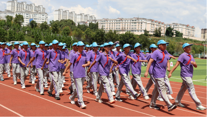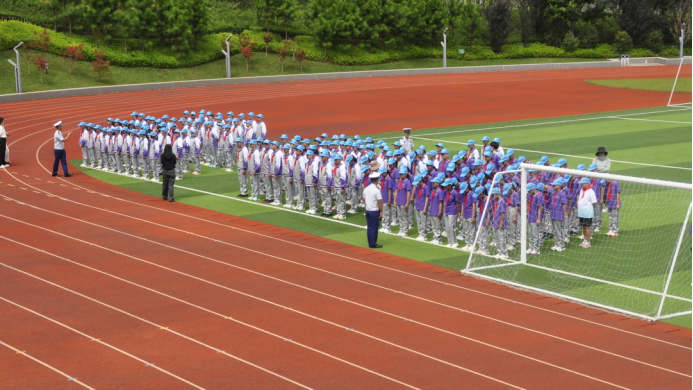 9月5日下午14時,初2028屆學(xué)前綜合教育匯報(bào)表演在運(yùn)動場舉行,內(nèi)容包含隊(duì)伍檢閱、分列式表演、廣播體操展示等。