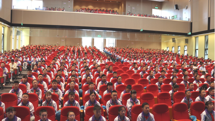 9月3日上午,初2028屆全體少先隊(duì)員身著整齊的紫色校服,佩戴著鮮艷的紅領(lǐng)巾,齊聚明德廳,共同觀看“紀(jì)念中國人民抗日戰(zhàn)爭暨世界反法西斯戰(zhàn)爭勝利80周年”閱兵儀式的全程直播,接受了一場深刻的愛國主義教育洗禮。