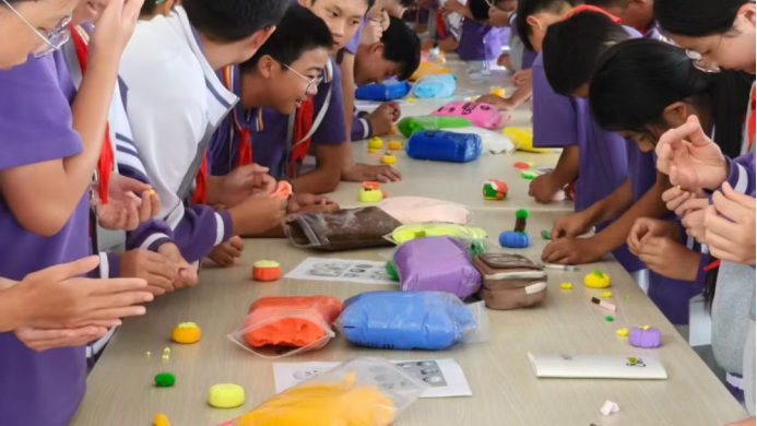 師生們歡聚一堂,在詩詞吟詠中重溫中秋文化內(nèi)涵,在協(xié)作互動中積蓄成長力量。同學們用超輕粘土捏出了樣式各異的團圓月餅,團圓味兒超足。